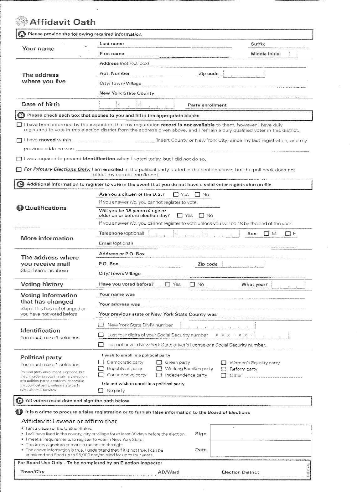Affidavit/Provisional Ballot